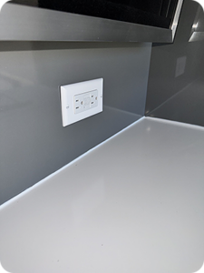 Standard 120V wall socket providing power for personal devices and operational equipment.