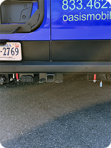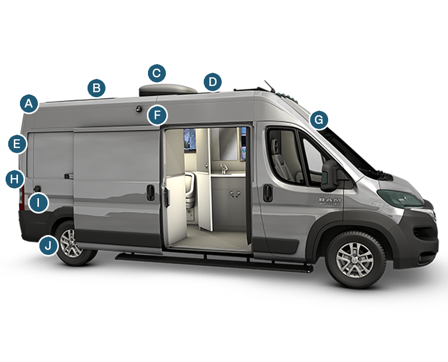 Rear driver’s side access ladder for roof maintenance, solar panel servicing, and equipment checks.