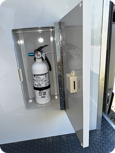 Mounted fire extinguisher in an accessible location for immediate response to fire emergencies.