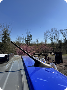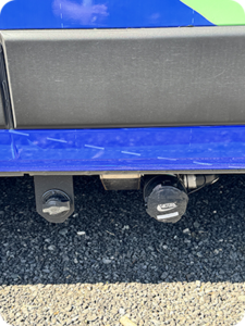Electric vehicle charging station plus shore power connection on the driver’s side for plug-in power at base.