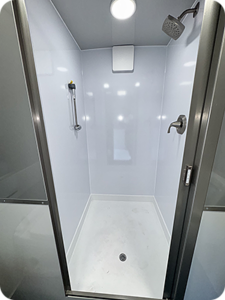 A complete shower unit with hot and cold water, designed for hygiene and comfort during extended field operations.