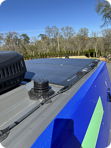Rooftop solar panels enabling fully off-grid power generation for extended autonomous operations.